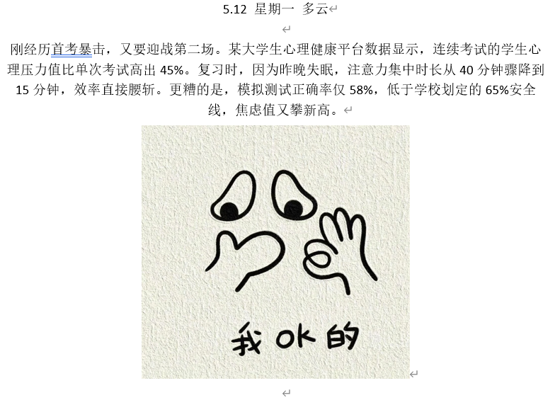 活动期间,众多本科生积极参与,通过每日撰写“概率日记”记录生活中的焦虑事件,并结合概率思维和网络数据进行理性分析。例如,一位2024级学生通过查询发现论文通过率达70%,有效缓解了对学术压力的担忧。参与者们在活动中学会了以数据为依托,重新审视情绪波动,从而实现从焦虑到自信的心态转变。活动结束后,根据参与者的日记质量,评选出优秀作品,以表彰他们在活动中的优秀表现。